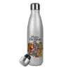 Merry Christmas Cats, Metallic Glitter Silver Thermos Flask (Stainless steel), double-walled, 500ml