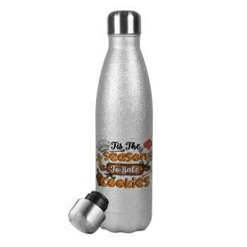 Tis The Season To Bake Cookies, Metallic Glitter Silver Thermos Flask (Stainless steel), double-walled, 500ml