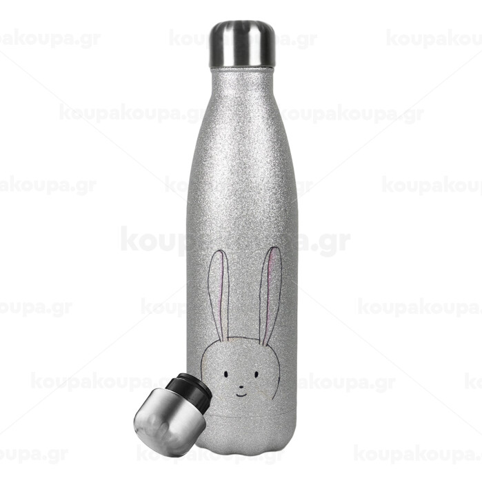 Ο λαγός του πάσχα, Metallic Glitter Silver Thermos Flask (Stainless steel), double-walled, 500ml