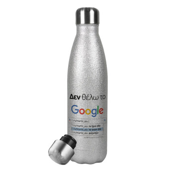 Δεν θέλω το Google, ο μπαμπάς μου..., Metallic Glitter Silver Thermos Flask (Stainless steel), double-walled, 500ml