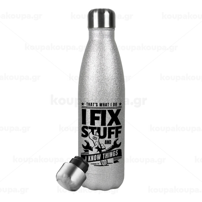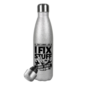 I fix stuff, Metallic Glitter Silver Thermos Flask (Stainless steel), double-walled, 500ml