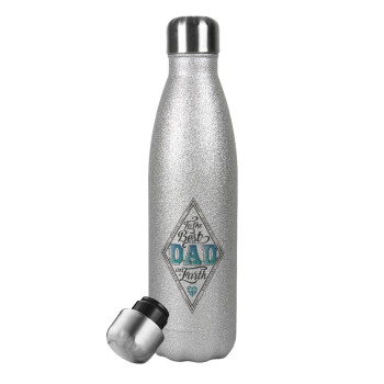 To the best DAD on earth, Metallic Glitter Silver Thermos Flask (Stainless steel), double-walled, 500ml