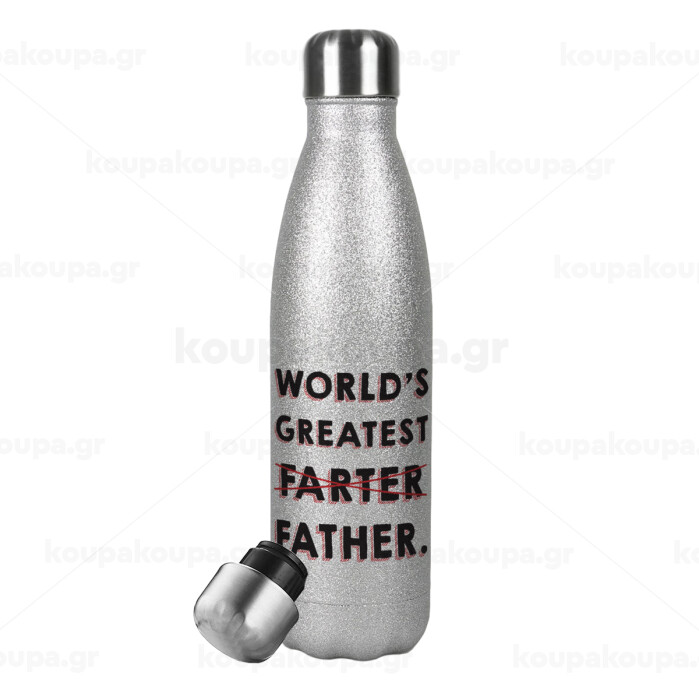 World's greatest farter, Metallic Glitter Silver Thermos Flask (Stainless steel), double-walled, 500ml