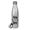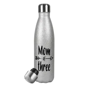 Mom of three, Metallic Glitter Silver Thermos Flask (Stainless steel), double-walled, 500ml