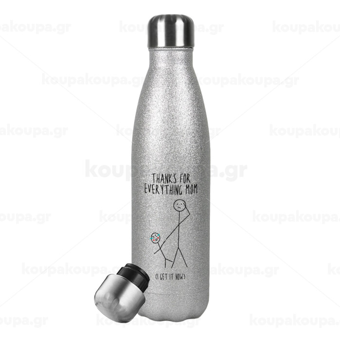 Thanks for everything mom, Metallic Glitter Silver Thermos Flask (Stainless steel), double-walled, 500ml