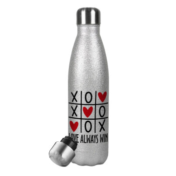 Love always win, Metallic Glitter Silver Thermos Flask (Stainless steel), double-walled, 500ml