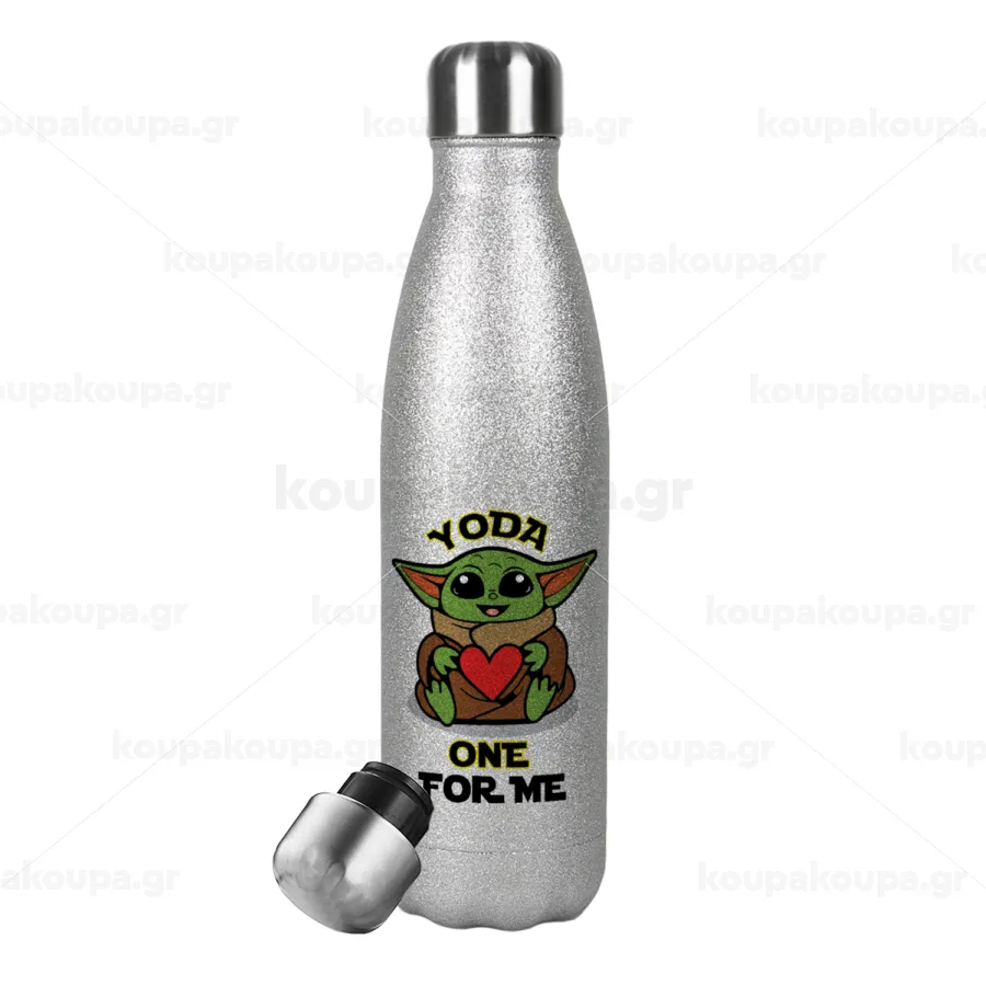 Yoda, one for me , Metallic Glitter Silver Thermos Flask (Stainless steel), double-walled, 500ml