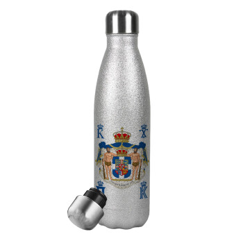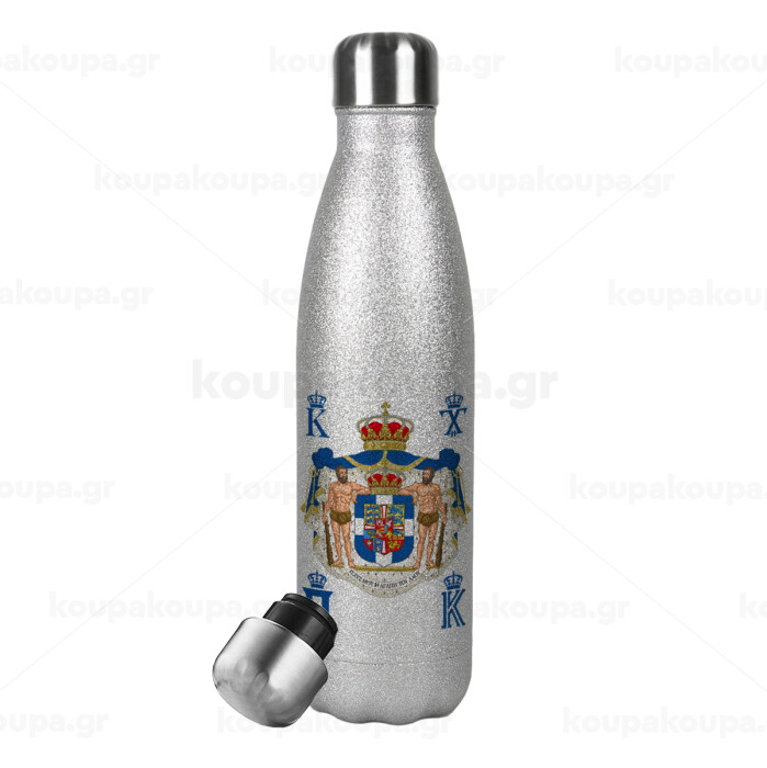 Hellas kingdom, Metallic Glitter Silver Thermos Flask (Stainless steel), double-walled, 500ml