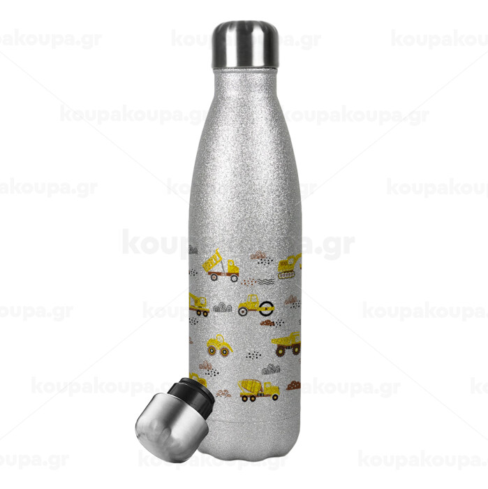 Car construction, Metallic Glitter Silver Thermos Flask (Stainless steel), double-walled, 500ml