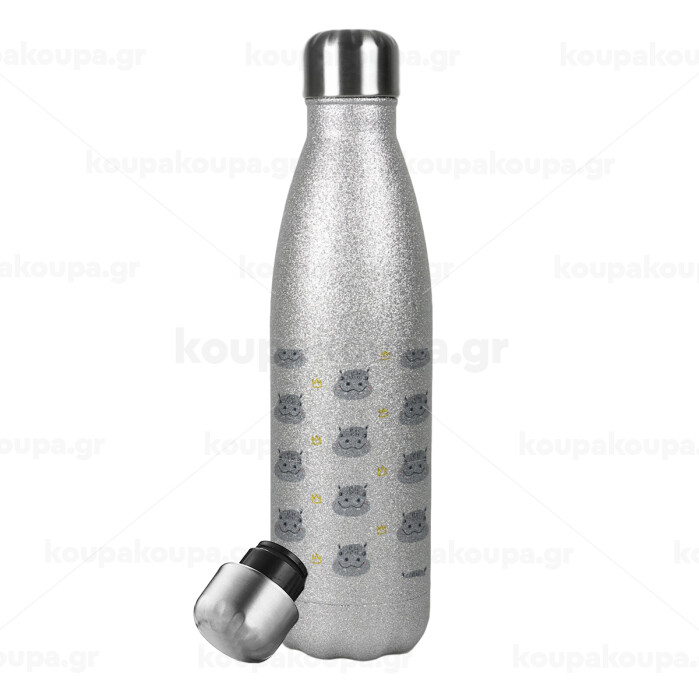 Hippo, Metallic Glitter Silver Thermos Flask (Stainless steel), double-walled, 500ml