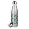 Panda, Metallic Glitter Silver Thermos Flask (Stainless steel), double-walled, 500ml
