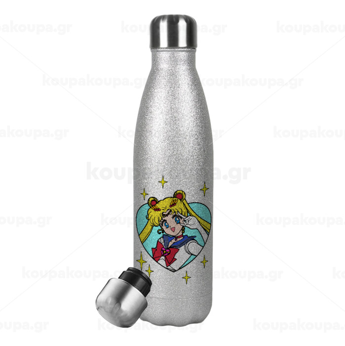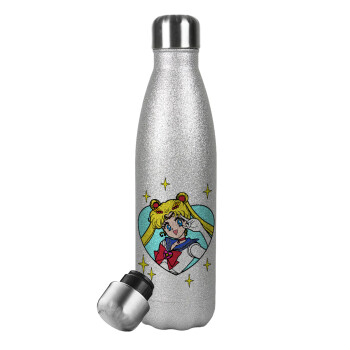 Sailor Moon star, Metallic Glitter Silver Thermos Flask (Stainless steel), double-walled, 500ml