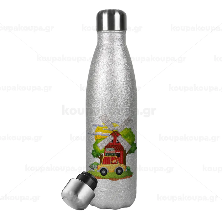 Toy car, Metallic Glitter Silver Thermos Flask (Stainless steel), double-walled, 500ml