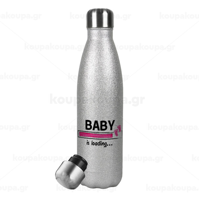 Baby is Loading GIRL, Metallic Glitter Silver Thermos Flask (Stainless steel), double-walled, 500ml