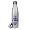 KEEP CALM baby boy is coming soon!!!, Metallic Glitter Silver Thermos Flask (Stainless steel), double-walled, 500ml