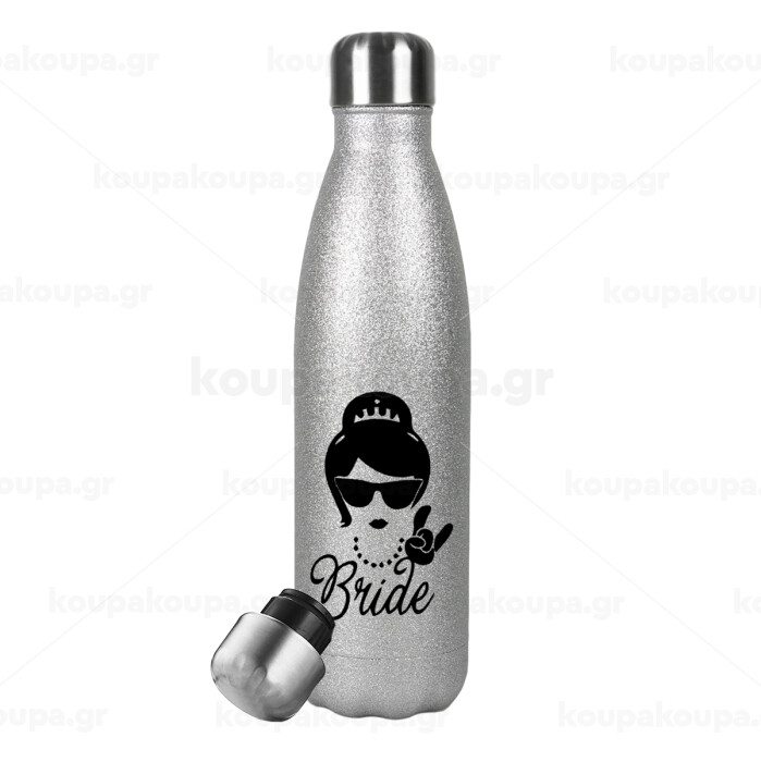 Bride hands, Metallic Glitter Silver Thermos Flask (Stainless steel), double-walled, 500ml
