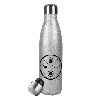 The Bachelor Rules, Metallic Glitter Silver Thermos Flask (Stainless steel), double-walled, 500ml