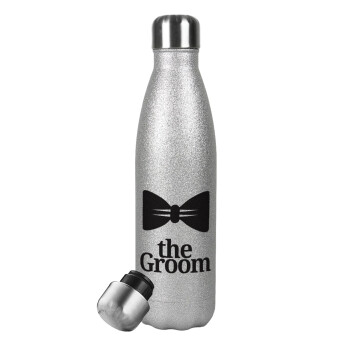 The Groom, Metallic Glitter Silver Thermos Flask (Stainless steel), double-walled, 500ml