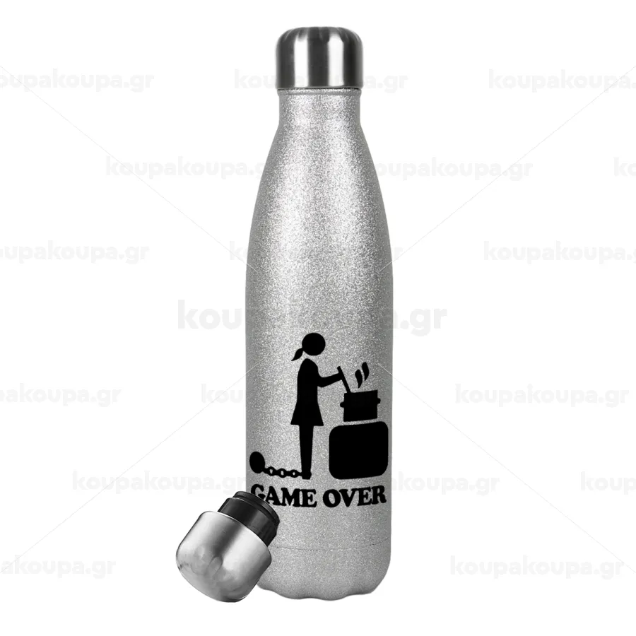 Woman Game Over, Metallic Glitter Silver Thermos Flask (Stainless steel), double-walled, 500ml