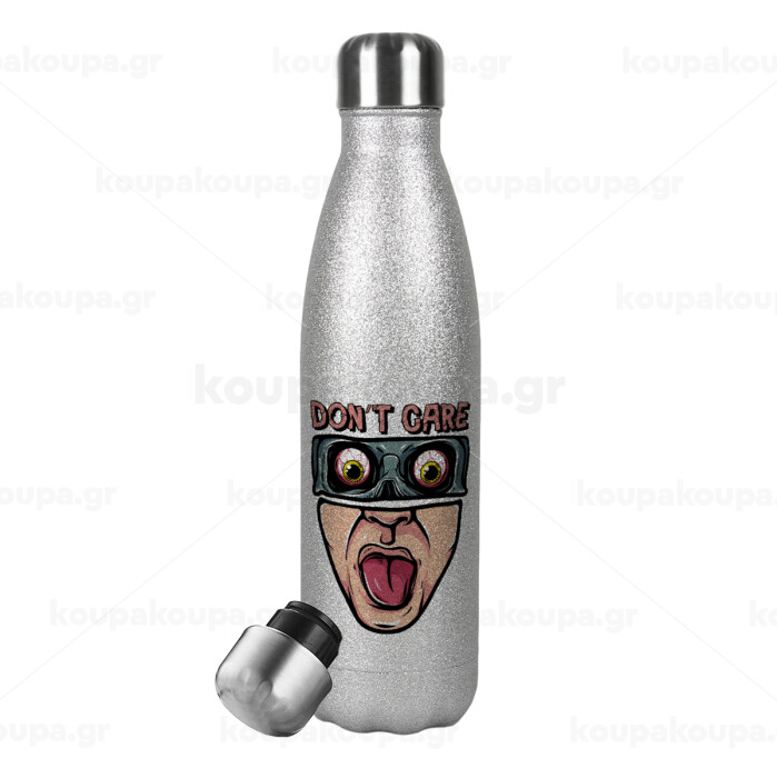 Don't Care, Metallic Glitter Silver Thermos Flask (Stainless steel), double-walled, 500ml
