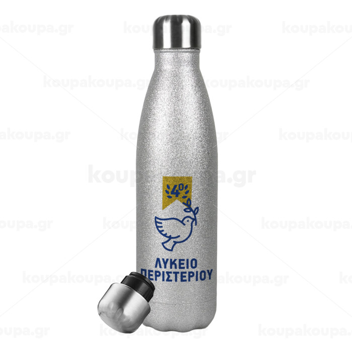 Έμβλημα Σχολικό μπλε/χρυσό περιστέρι, Metallic Glitter Silver Thermos Flask (Stainless steel), double-walled, 500ml