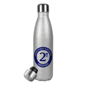 Έμβλημα Σχολικό μπλε, Metallic Glitter Silver Thermos Flask (Stainless steel), double-walled, 500ml
