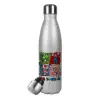 Back to the School Mario & Friends, Metallic Glitter Silver Thermos Flask (Stainless steel), double-walled, 500ml