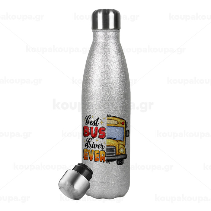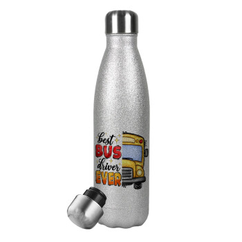 Best bus driver ever!, Metallic Glitter Silver Thermos Flask (Stainless steel), double-walled, 500ml