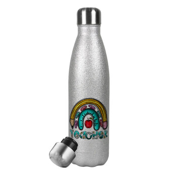 Teacher, Metallic Glitter Silver Thermos Flask (Stainless steel), double-walled, 500ml