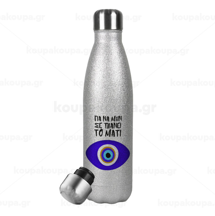 Για να μην σε πιάνει το μάτι, Metallic Glitter Silver Thermos Flask (Stainless steel), double-walled, 500ml