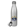 blue evil eye, Metallic Glitter Silver Thermos Flask (Stainless steel), double-walled, 500ml