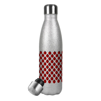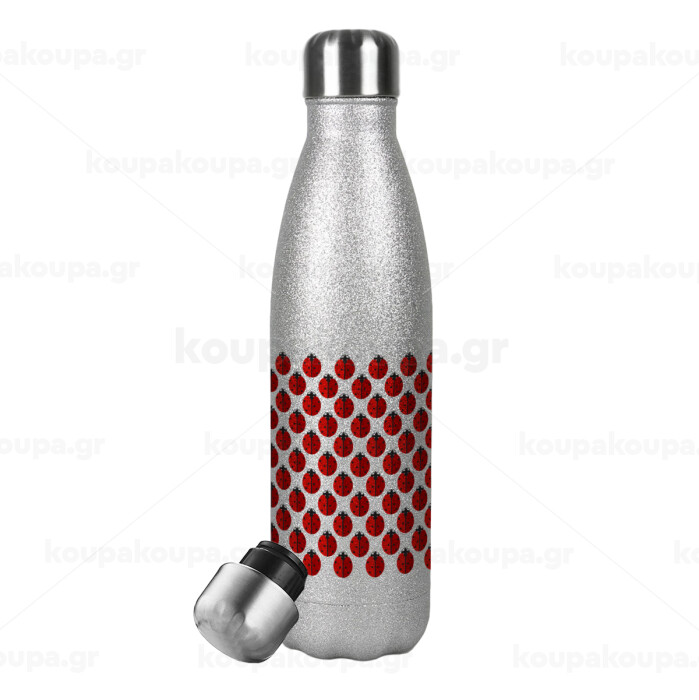 Coccinella, Metallic Glitter Silver Thermos Flask (Stainless steel), double-walled, 500ml