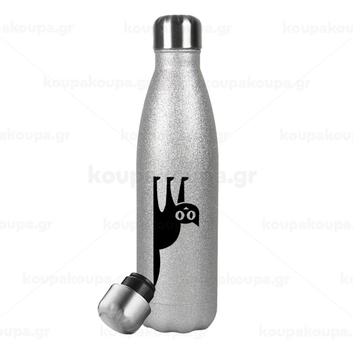 Cat upside down, Metallic Glitter Silver Thermos Flask (Stainless steel), double-walled, 500ml