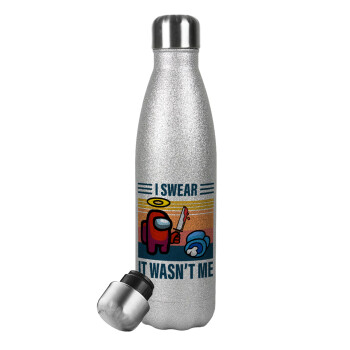 Among us, I swear it wasn't me, Metallic Glitter Silver Thermos Flask (Stainless steel), double-walled, 500ml