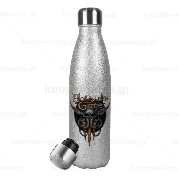 Baldur's Gate, Metallic Glitter Silver Thermos Flask (Stainless steel), double-walled, 500ml