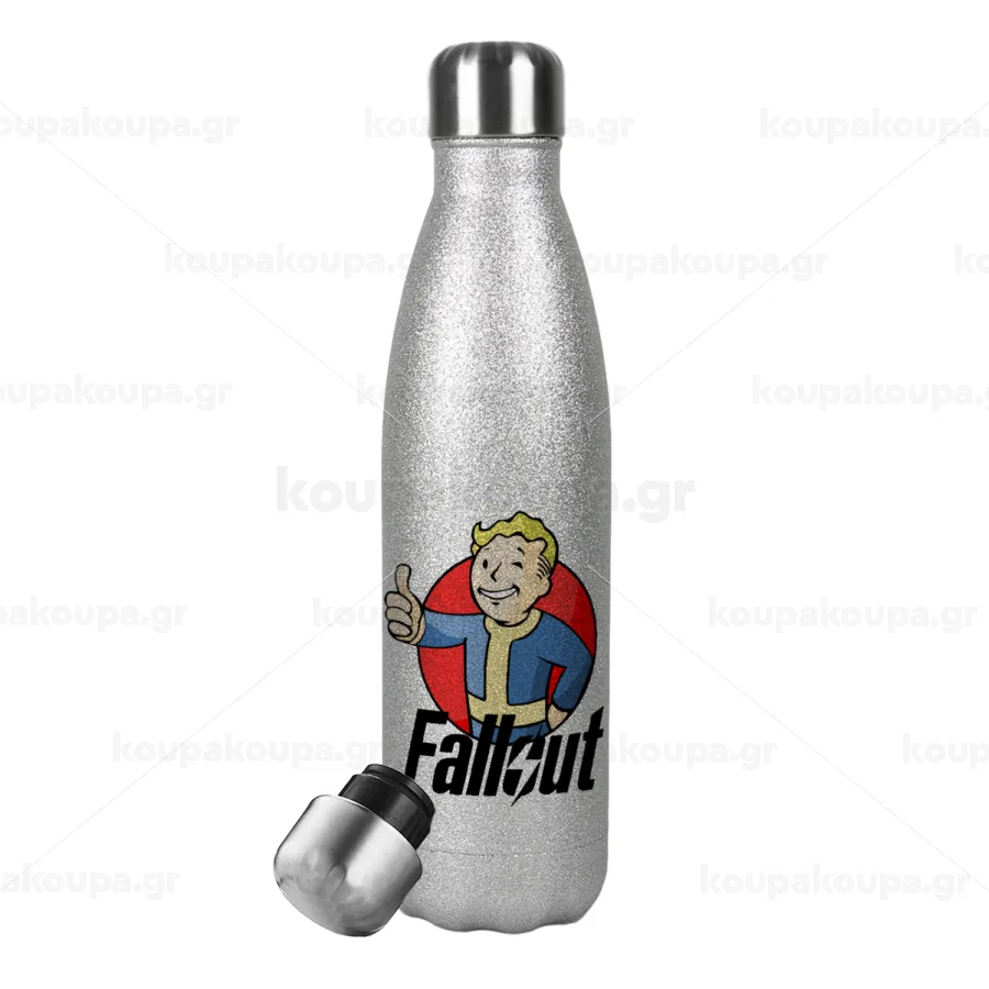 Fallout Vault Boy, Metallic Glitter Silver Thermos Flask (Stainless steel), double-walled, 500ml