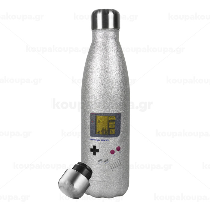 Gameboy, Metallic Glitter Silver Thermos Flask (Stainless steel), double-walled, 500ml