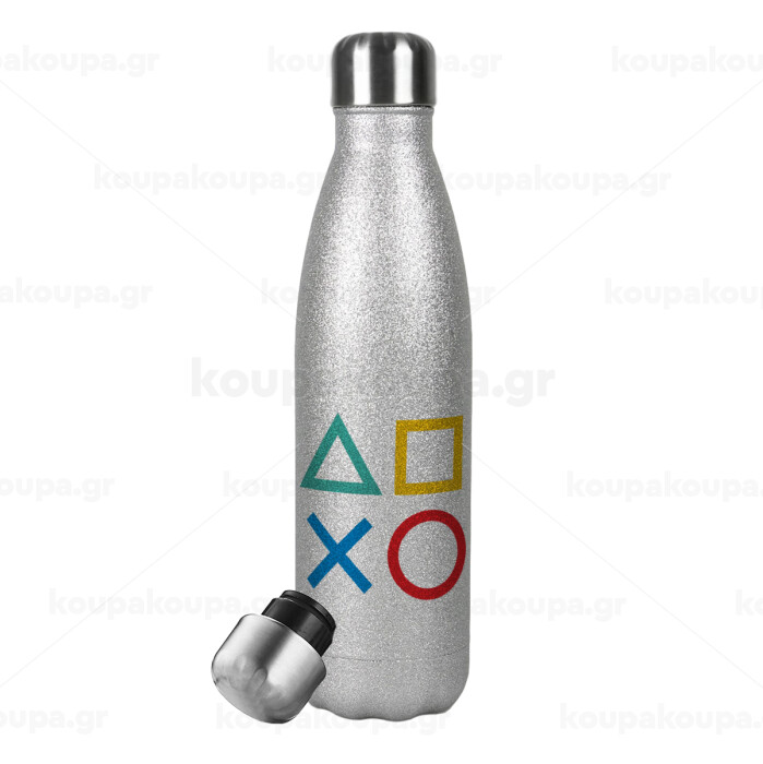 Gaming Symbols, Metallic Glitter Silver Thermos Flask (Stainless steel), double-walled, 500ml