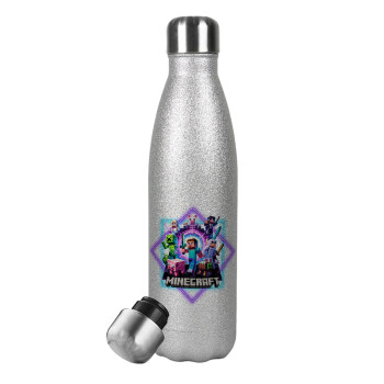 Minecraft Nether Portal, Metallic Glitter Silver Thermos Flask (Stainless steel), double-walled, 500ml