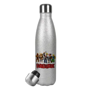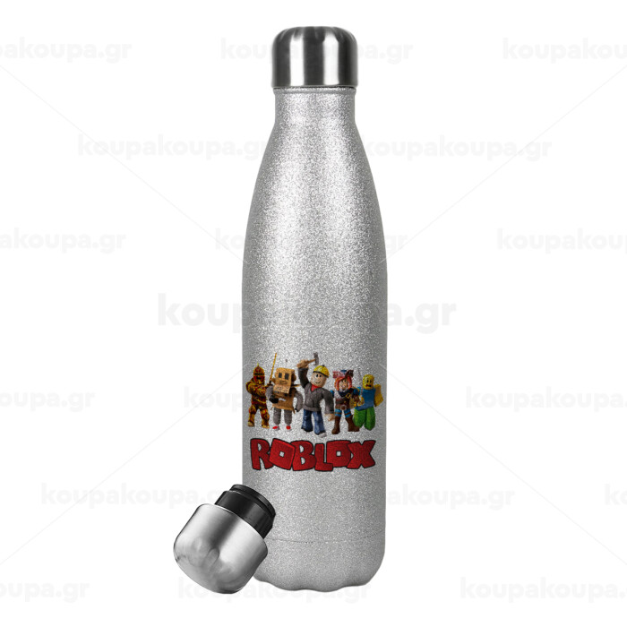 Roblox squad, Metallic Glitter Silver Thermos Flask (Stainless steel), double-walled, 500ml