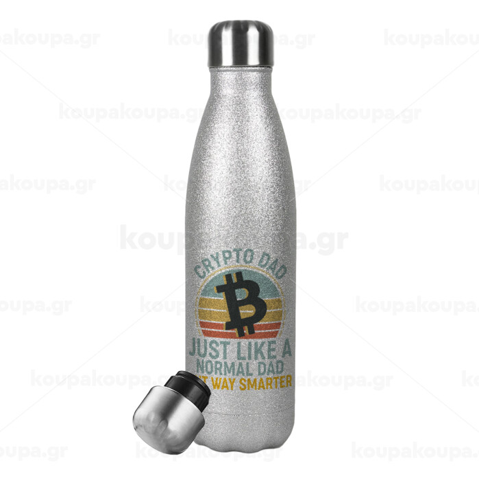 Crypto Dad, Metallic Glitter Silver Thermos Flask (Stainless steel), double-walled, 500ml