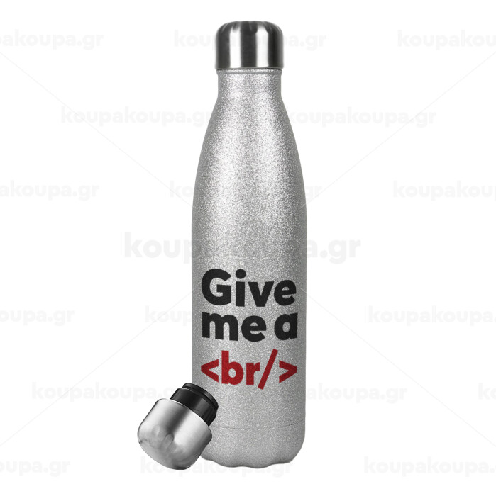 , Metallic Glitter Silver Thermos Flask (Stainless steel), double-walled, 500ml