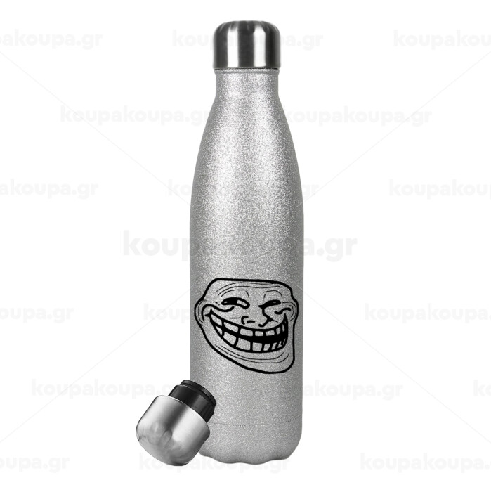 Troll face, Metallic Glitter Silver Thermos Flask (Stainless steel), double-walled, 500ml
