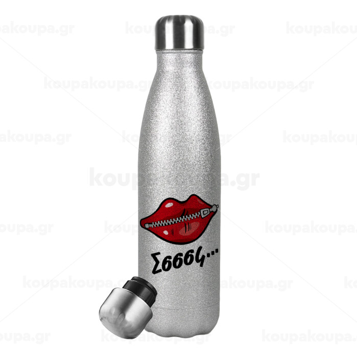 Σσσσς..., Metallic Glitter Silver Thermos Flask (Stainless steel), double-walled, 500ml