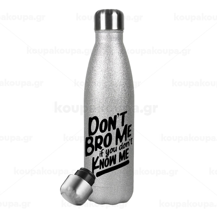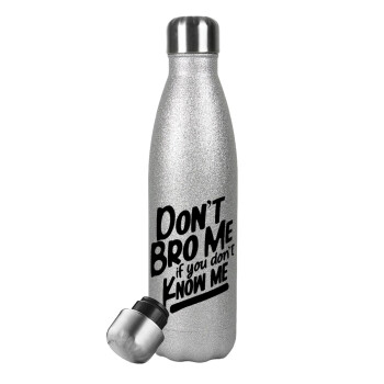 Dont't bro me, if you don't know me., Metallic Glitter Silver Thermos Flask (Stainless steel), double-walled, 500ml