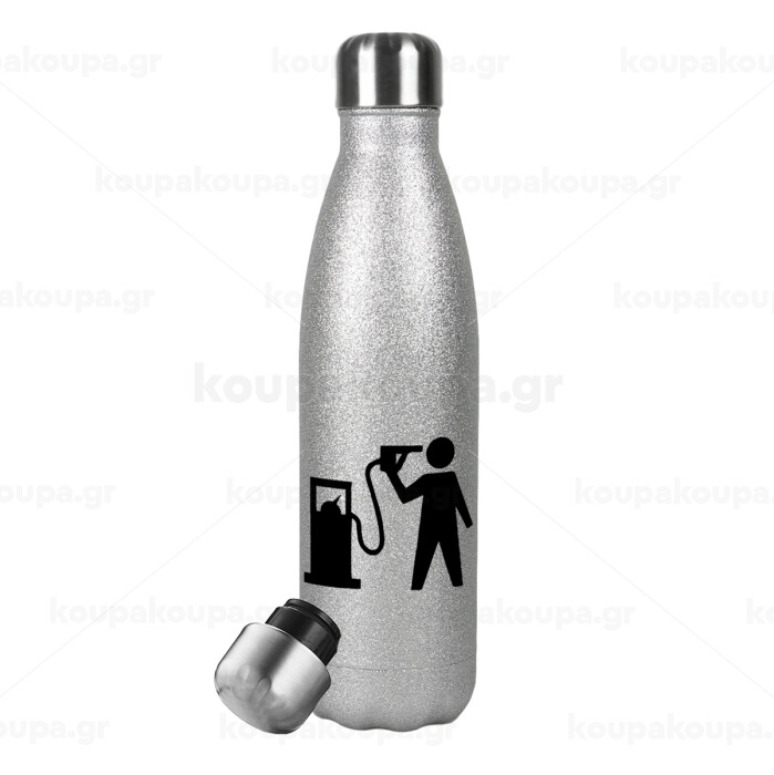Fuel crisis, Metallic Glitter Silver Thermos Flask (Stainless steel), double-walled, 500ml