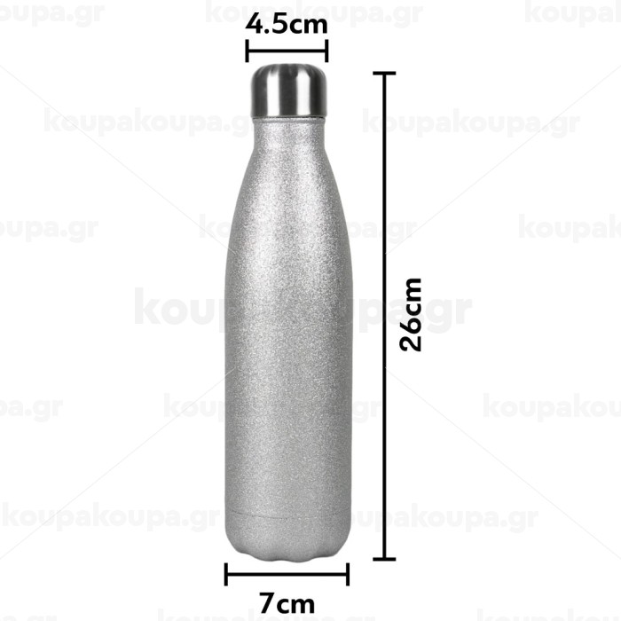 Size matters, Metallic Glitter Silver Thermos Flask (Stainless steel), double-walled, 500ml