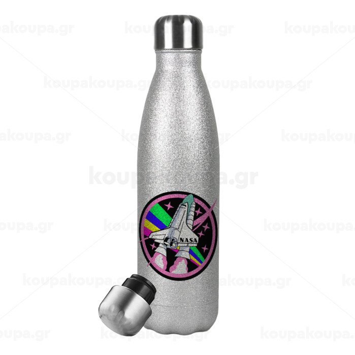 NASA pink, Metallic Glitter Silver Thermos Flask (Stainless steel), double-walled, 500ml
