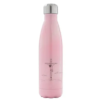 Jesus Christ , Metal mug thermos Pink Iridiscent (Stainless steel), double wall, 500ml