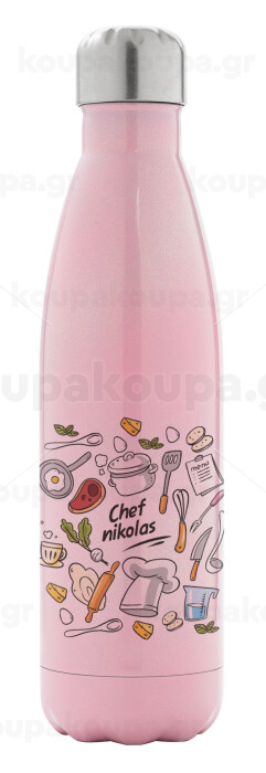 Chef με όνομα, Metal mug thermos Pink Iridiscent (Stainless steel), double wall, 500ml